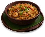 Nasi goreng dengan ayam, udang dan sotong.