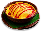 Nasi goreng dibalut telur dan disiram sos cili.